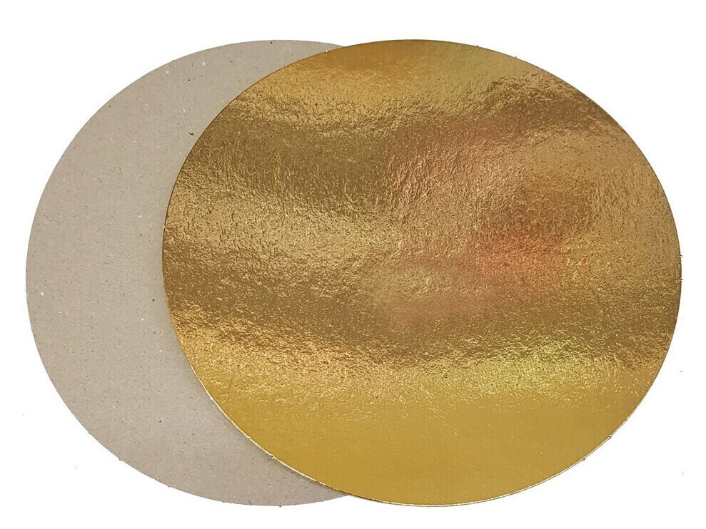 Подложка для торта, диаметр 200мм, толщина 1.5мм, золотая/белая, круглая